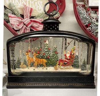 - Santa Reindeer Scene in Bronze Lighted Water Lantern With Swirling Glitter - 2732480-santa