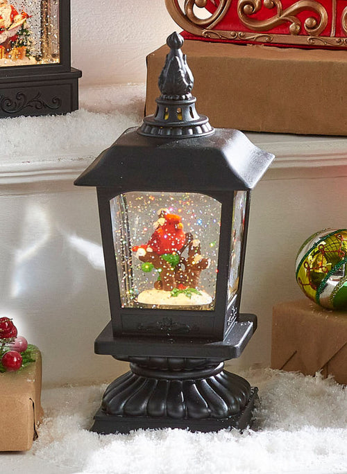 Welcome the holiday season into your home with this elegant Cardinal on Branch Pedestal Lighted Water Lantern. Featuring a breathtakingly detailed red cardinal perched atop a snow-capped branch with holly and bright red berries, your winter décor can be elevated instantly. Watch it come alive with the addition of swirling iridescent glitter, while a USB-included power cord ensures that it will always be on display. This one-of-a-kind piece will add a timeless style to your home.