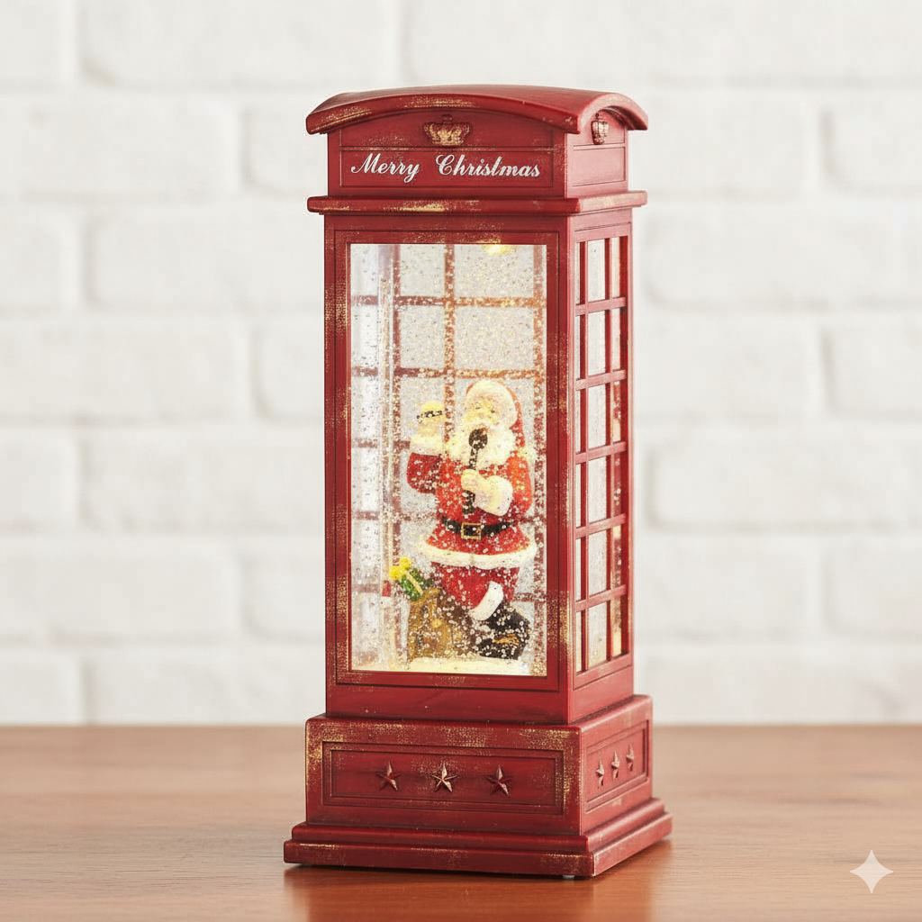 10 Inch Santa In English Phone Booth Lighted Water Lantern - 131405 NEW