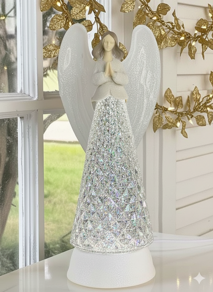 Lighted Angel With Swirling Glitter 13.25" White Base - 4419257 - NEW