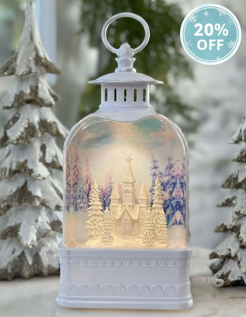 Musical Holiday Church Scene Water Lantern with Swirling Glitter - 22172 - USB Included NEW 2025