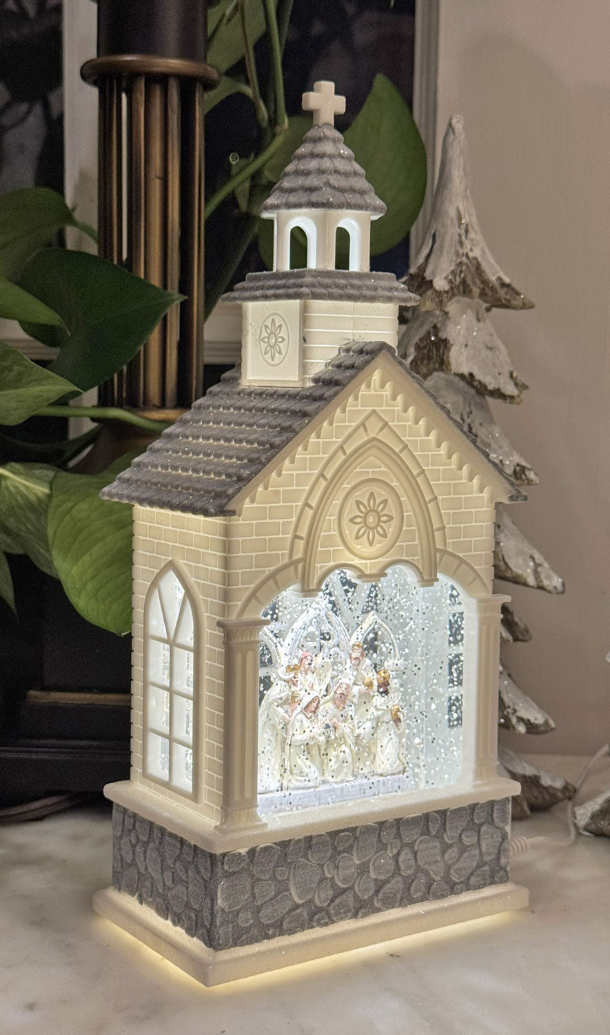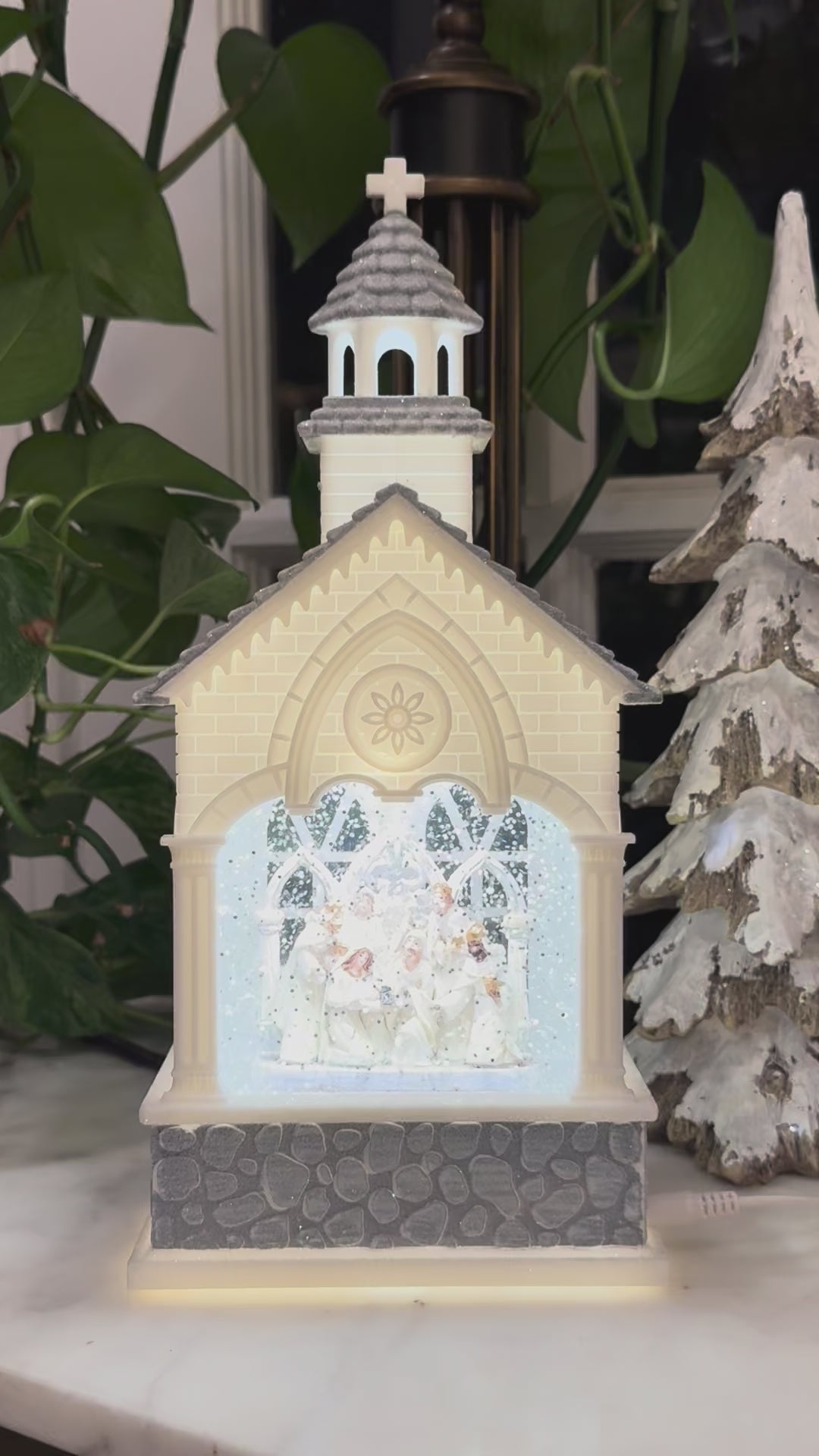 12 Inch Nativity In Church Musical Water Lantern - USB Included - 23001 New 2025