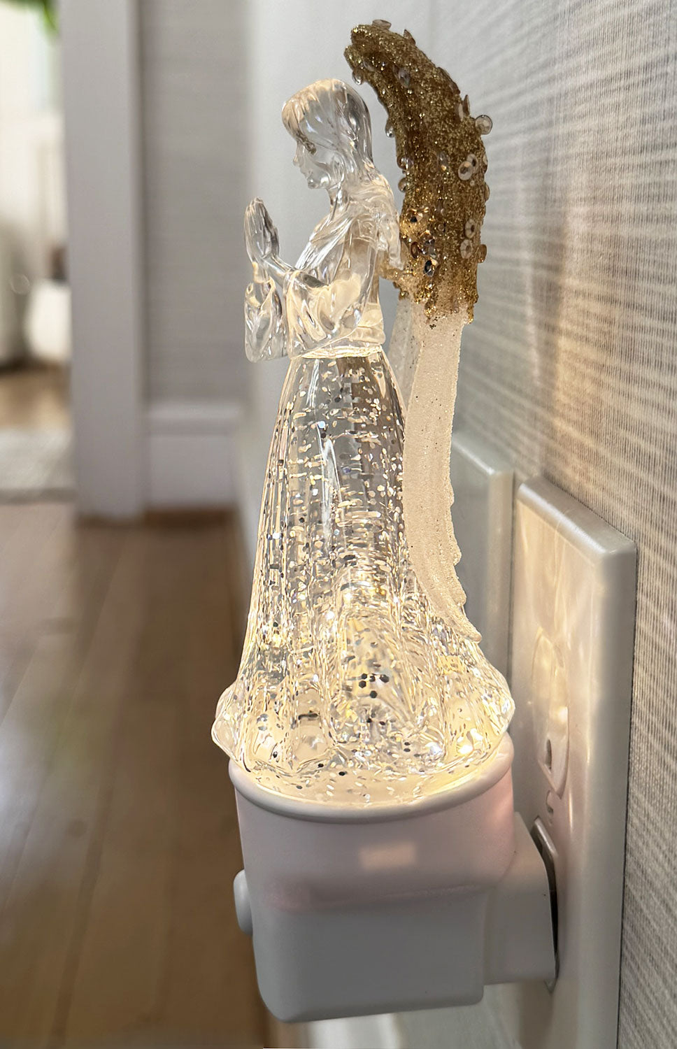 Nightlight Angel With Gold Wings Plug-In Water Globe With Swirling Glitter - 2803350-Angel - NEW 2026