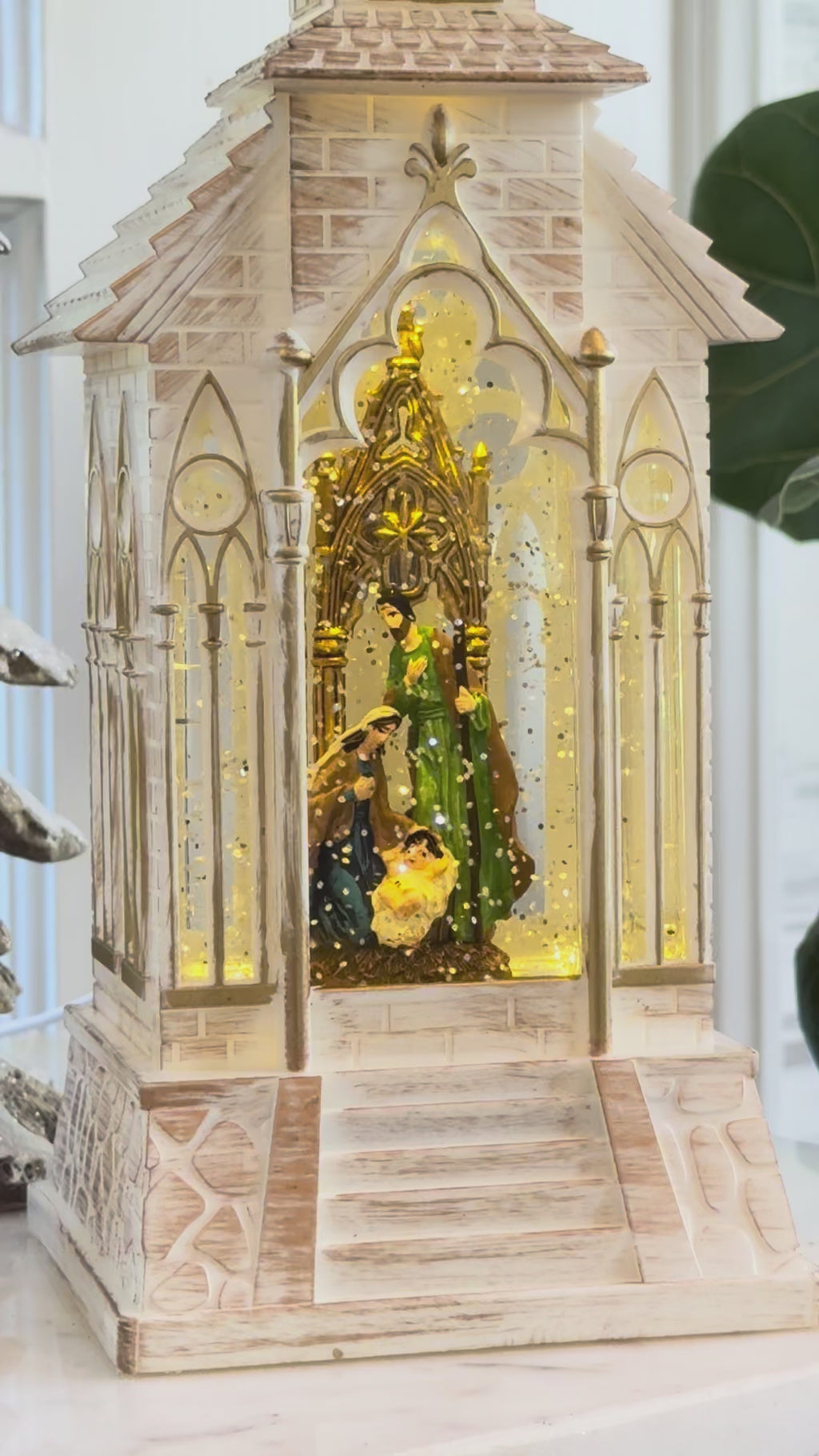 Musical Church With Nativity Scene Plays Silent Night Water Lantern with Swirling Glitter - 20331 - USB Included NEW 2025