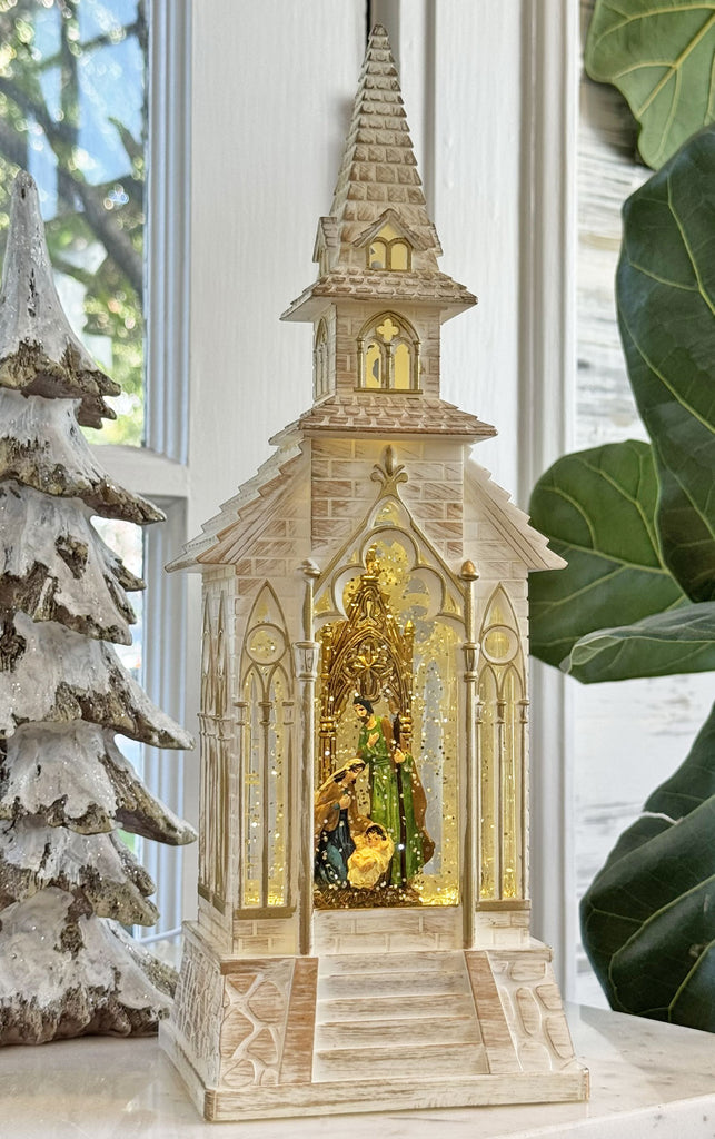 Musical Church With Nativity Scene Plays Silent Night Water Lantern with Swirling Glitter - 20331 - USB Included NEW 2025