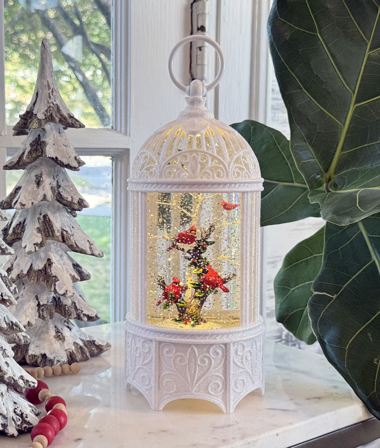Musical White Birdcage With Cardinals Lighted Water Lantern With Swirling Glitter - 20106 - USB Included NEW 2025