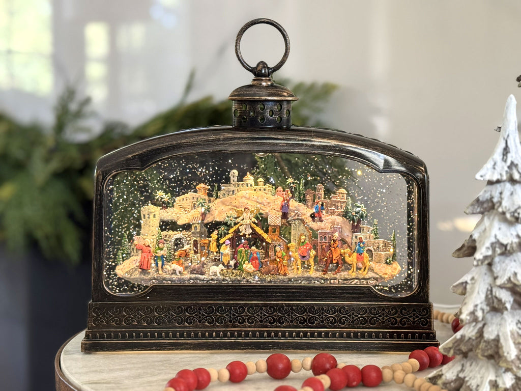 Lighted Nativity Scene Extra Wide Water Lantern With Swirling Glitter - USB CORD Included - 2659150 Nativity