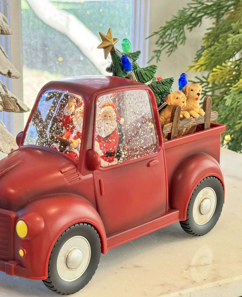 Santa and Dog With Lighted Tree In Red Truck Lighted Water Lantern, USB Included - 4500796 - New 2025