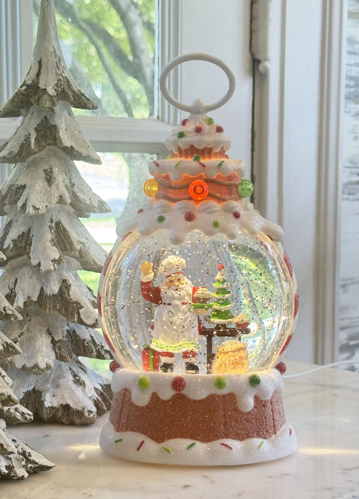 Brighten your holidays with the 2025 Gingerbread Cupcake Water Globe! Inside, Santa is busy baking cakes, surrounded by swirling glitter that adds a magical sparkle. This delightful water globe can be powered by battery or USB cord, making it easy to display holiday cheer anywhere with a playful touch.