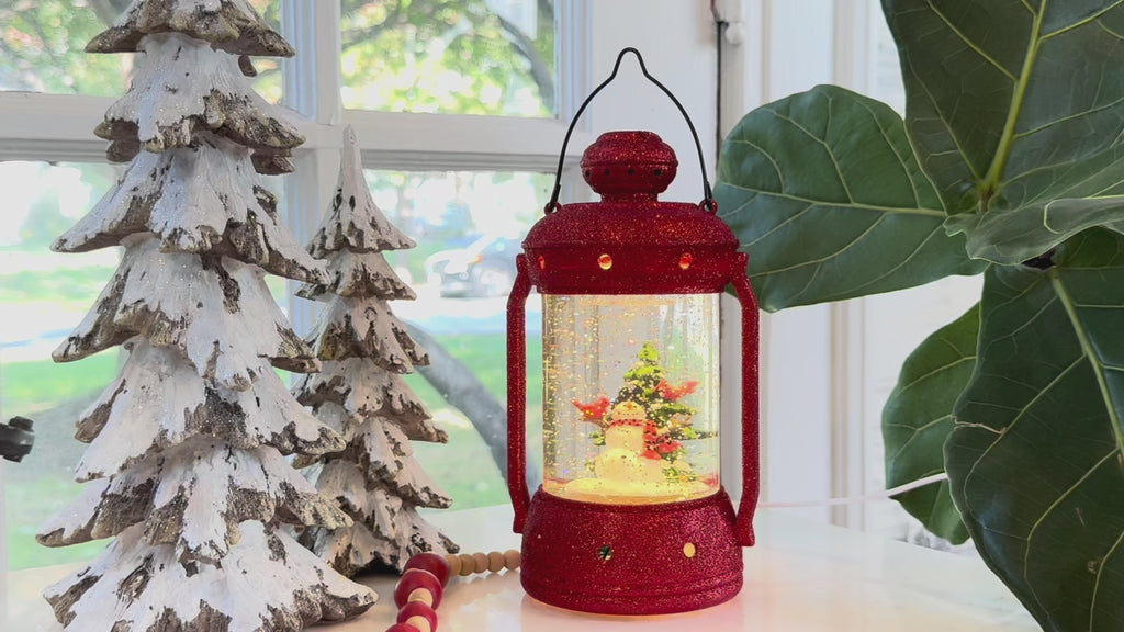 Snowman Lighted Red Glitter Water Lantern with Swirling Glitter - 21121 - USB Included NEW 2025