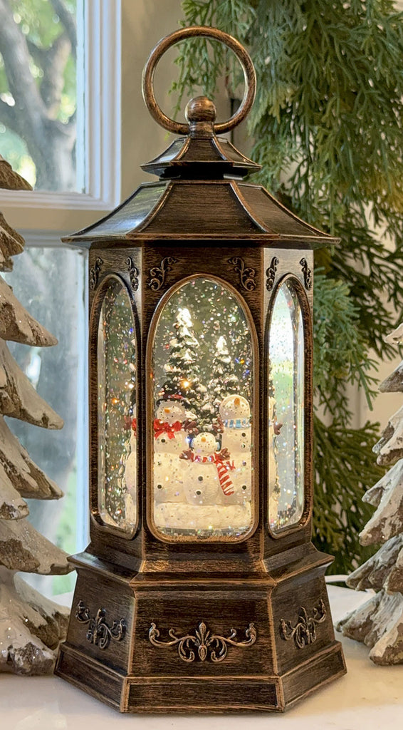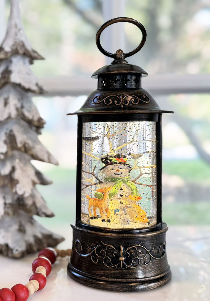 Snowman Scene Antique Lighted Water Lantern With Swirling Glitter - 4500772 - USB Included New 2025
