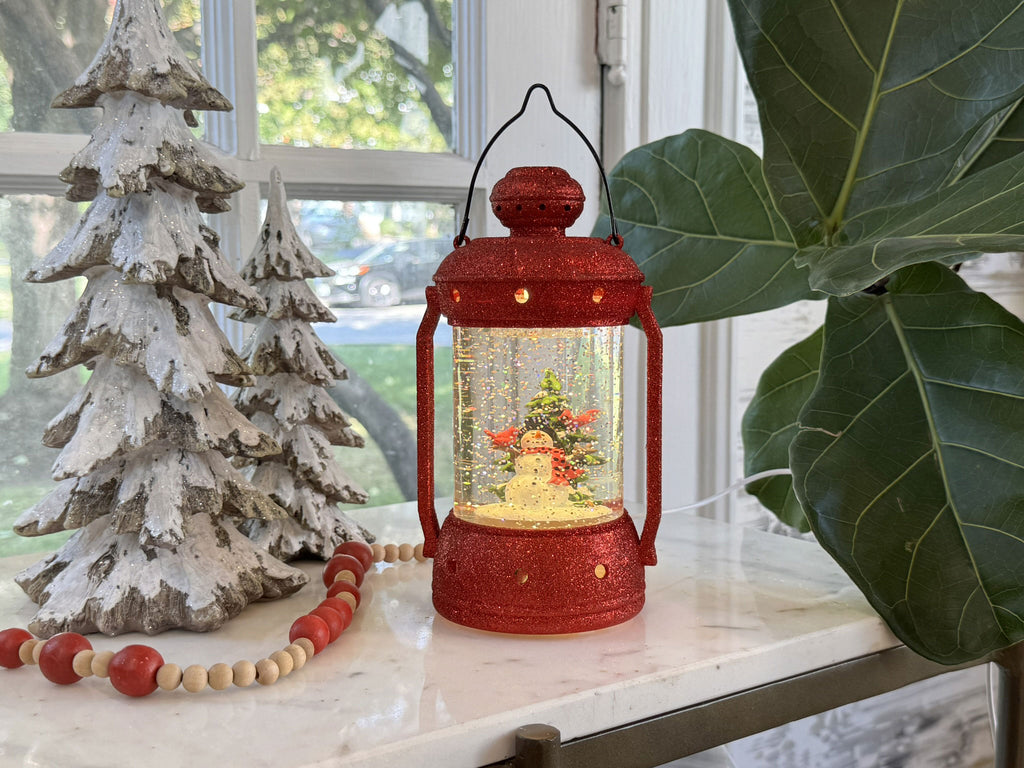 Snowman Lighted Red Glitter Water Lantern with Swirling Glitter - 21121 - USB Included NEW 2025