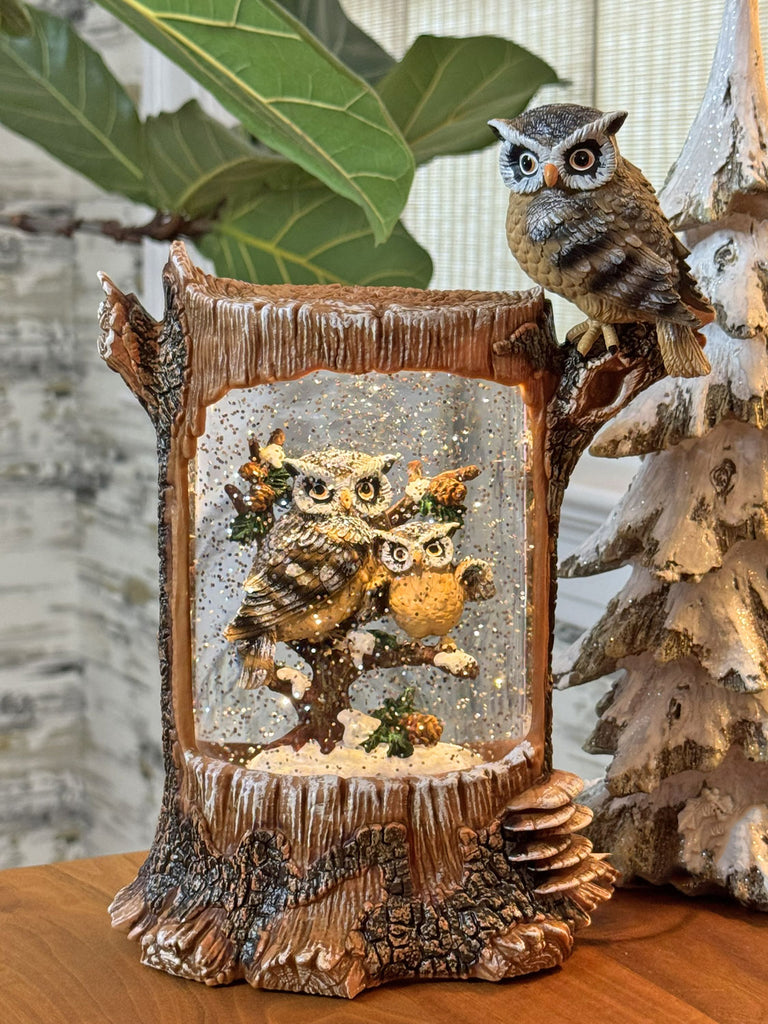 Owls In Tree Snow Globe Water Lantern with Swirling Glitter - 2732330 New