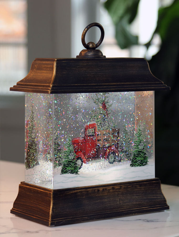 Red Truck in Bronze Lighted Water Lantern With Swirling Glitter - 2732480-Truck