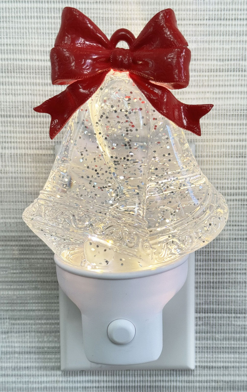 Nightlight Bells with Red Bow Plug-In Water Globe With Swirling Glitter - 2803350-Bells - NEW 2026